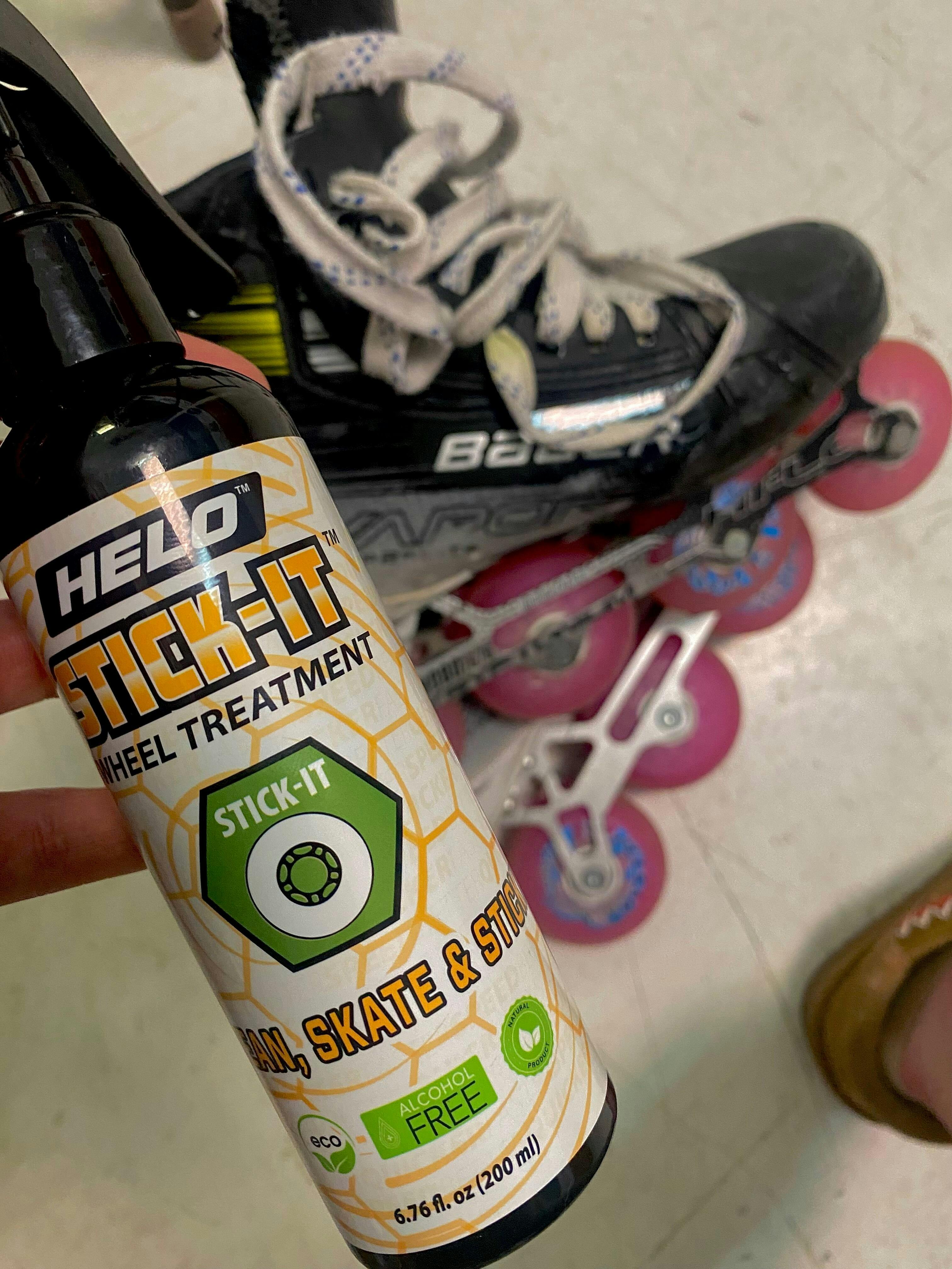 - Safely cleans rink particles and residue from wheels - "clean, skate, and stick